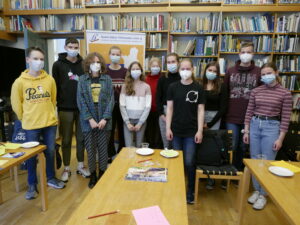 Hedelmällisen ja innostavan keskustelun päätteeksi teemme vielä yhteisen valokuvan tästä iloisesta ja motivoituneesta ryhmästä, sitten nuoret kiittävät kohteliaasti vierailusta ja suuntaavat kohti Kauppatoria ja yhteistä retkeä kauniiseen Suomenlinnaan. Viel Spass noch!