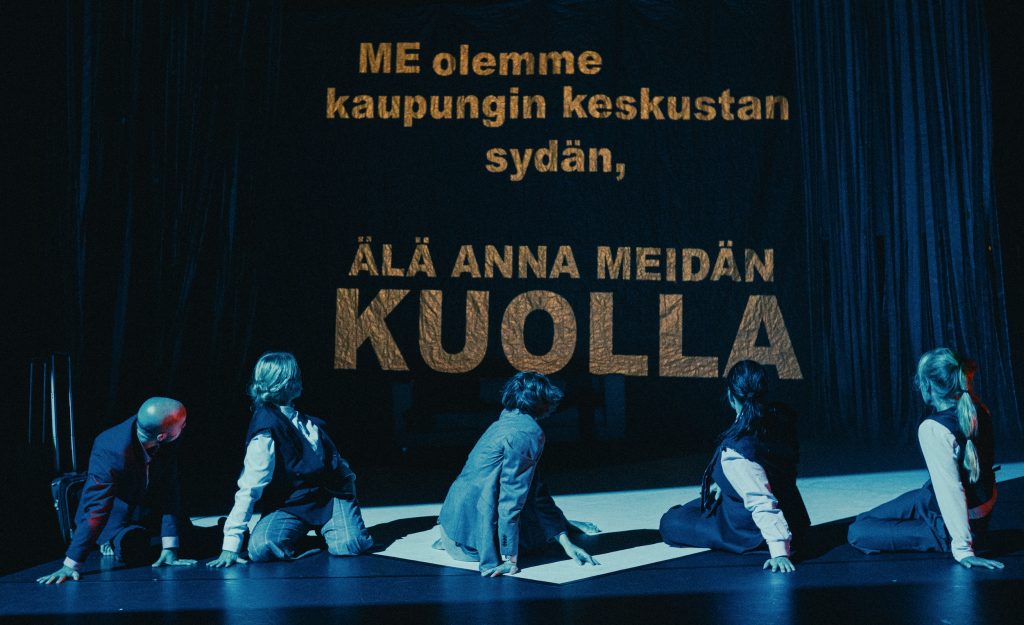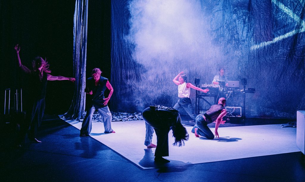 TRUST von Tanssiteatteri Tsuumi und Teatteri Metamorfoosi ist ein temporeiches Tanztheaterstück, in dem sich Bewegung, Sprache und Musik von fünf Performer:innen und einem Musiker zu einem dichten szenischen Geflecht verweben. Die Inszenierung basiert auf einem Stück des renommierten deutschen Autors und Regisseurs Falk Richter.