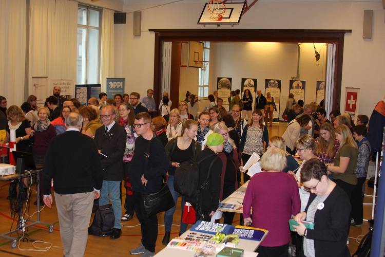Zur Messe- und Workshopveranstaltung Im deutschen Netz zusammen sammelten sich am Samstag, den 30. September fast hundert an der deutschen Sprache und Kultur Interessierte in der Deutschen Schule Helsinki. Die als Zusammenarbeit von dem Verband der Finnisch-Deutschen Vereine mit dem Finnischen Deutschlehrerverband organisierte Veranstaltung bot dem Publikum einen Möglichkeit zum Kennenlernen der Finnisch-Deutschen Institutionen und zum Vernetzen. Beim Messeteil der Veranstaltung präsentierten sich u.a. die Deutsche Botschaft, die Österreichische und Schweizerische Botschaft, Otava, Sanoma Pro und LURRA Editions, die Deutsche Evangelisch-Lutherische Gemeinde in Finnland, die Deutsche Bibliothek sowie das Goethe-Institut und die Vereine von SSYL.